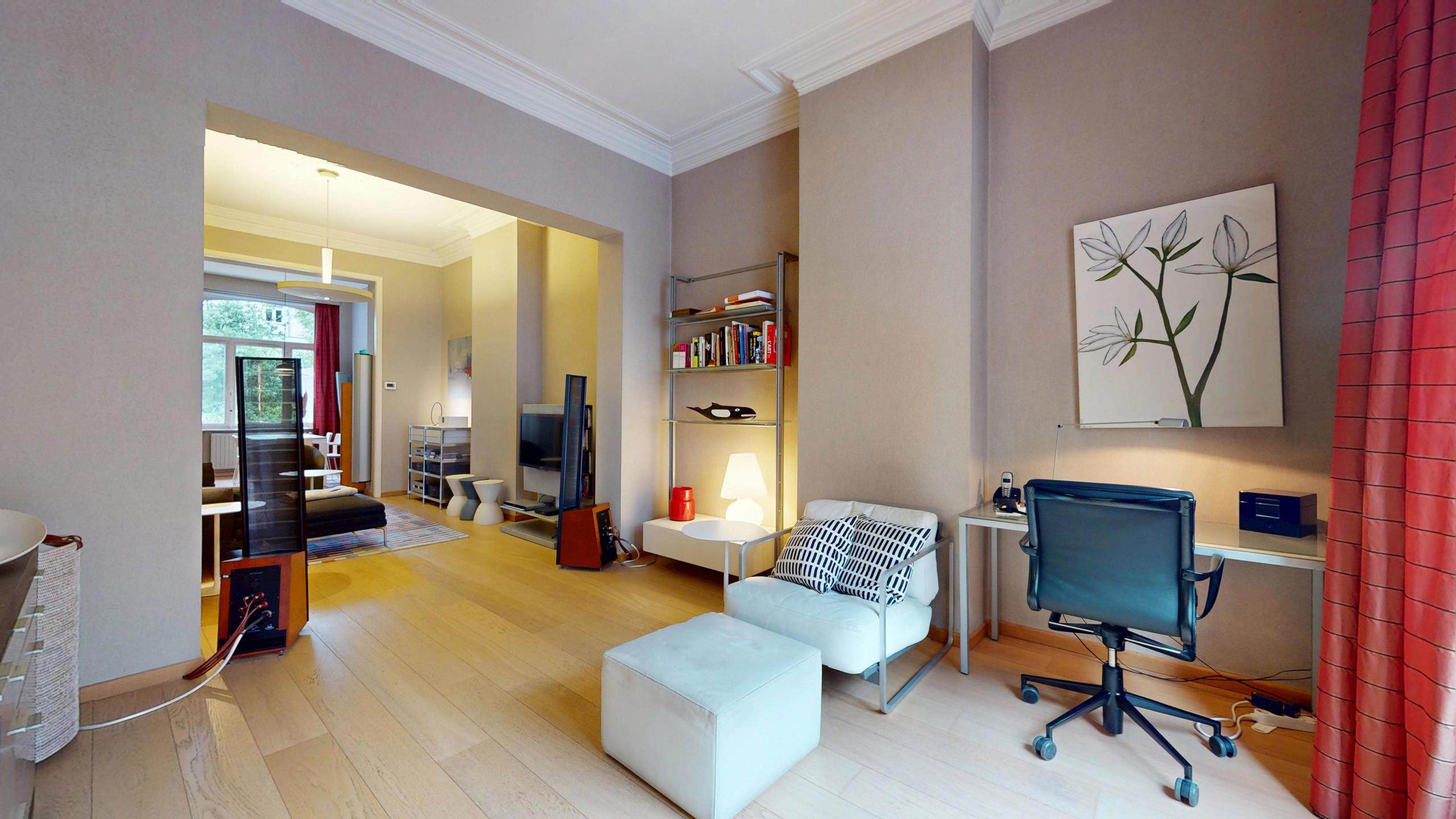 Expertissimmo offers you a beautiful character house in WOLUWE-SAINT-LAMBERT. Excellent location on a quiet little avenue in the Marie-José neighborhood, close to shops and the Georges Henri transport hub. Spacious mansion with a total surface area of +/- 361m², comprising 5 bedrooms + office + games room/possibility of professional practice/multipurpose room with terrace/garden and balconies on each floor. Ground floor +/- 80m²: Entrance hall - Living room with beautiful solid wood flooring (3 adjoining rooms): Living room +/- 40m² (lounge +/- 30m² and dining room +/- 10m²) - Separate kitchen with access to balcony and garden terrace +/- 42m² - Separate toilet with washbasin. 1st floor +/- 80m²: Landing - 2 bedrooms (+/- 20 and 10.5m²) - Multipurpose room/office/dressing room (+/- 15m²) - Shower room (shower, sink and toilet) - Laundry room with access to balcony. 2nd floor +/- 80m²: Landing - 2 bedrooms (+/- 20 and 10.5m²) - Multipurpose room/office/dressing room (+/- 15m²) - Bathroom (bath, sink and toilet) - Storage room with balcony access. 3rd floor (under the roof): Large attic (can be converted into a bedroom of +/- 20m2 with shower room +/- 7m2 + office +/- 6m2).Lower ground floor/basement +/- 80m² with access to garden/terrace: 2 multipurpose rooms (former kitchen) in a row (possibility of professional practice/workshop) - Storage cellars - Boiler room/laundry room. MISCELLANEOUS: 2020 gas condensing boiler. Double glazing. Insulated roof. RU and plans available. House recognized as a 3-apartment building by the city planning department. Excellent energy performance rating = D-. PRICE: €790,000. The owner reserves the right to accept or refuse any offer.
